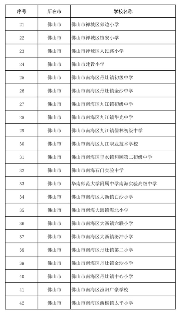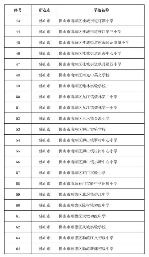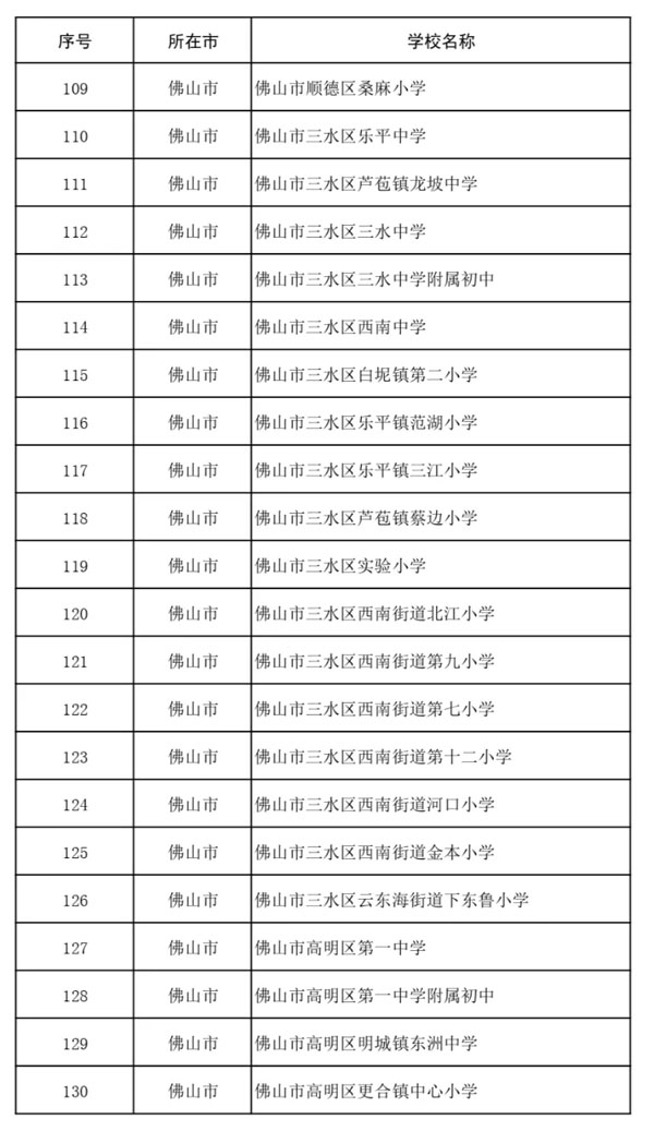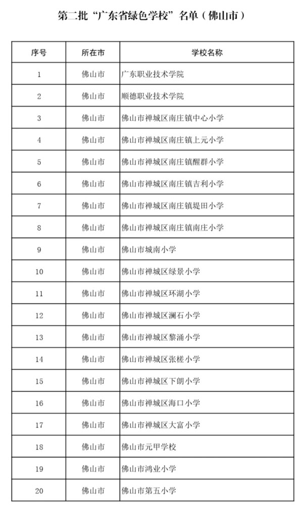 广东省教育厅近日公布了新一批认定的“广东省绿色学校”名单。经各地教育局评审并推荐、省教育厅复核并公示,全省共认定3259所学校为第二批“广东省绿色学校”,佛山市133所学校榜上有名。