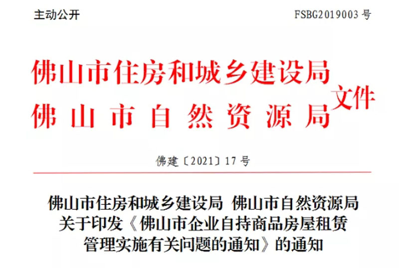 11月25日,佛山市住建局联合佛山市自然资源局发布了《佛山市企业自持商品房屋租赁管理实施有关问题的通知》。