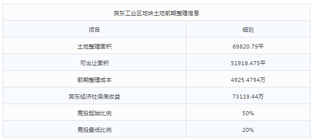 项目土地前期整理成本为4925.4794 万元,改造后,奕东经济社保底收益不少于73119.44万元。