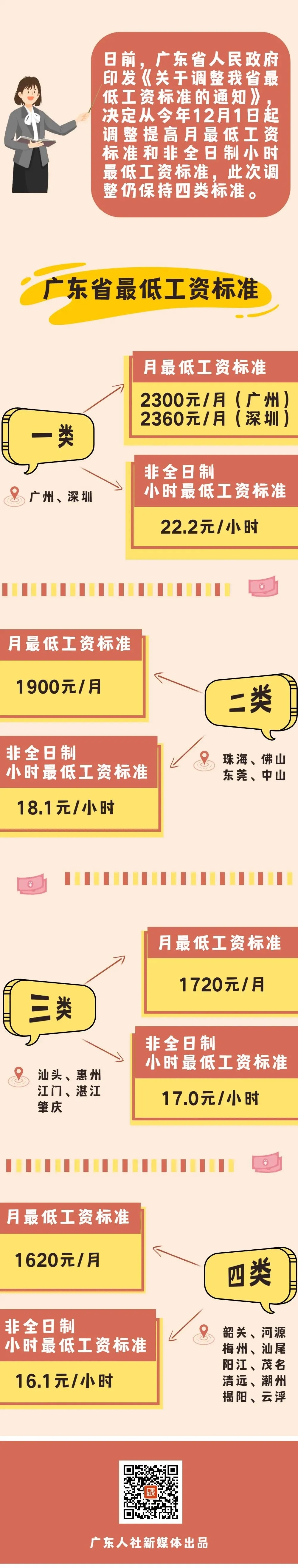 日前,广东省人民政府门户网站发布《广东省人民政府关于调整我省最低工资标准的通知》,决定从今年12月1日起调整提高月最低工资标准和非全日制小时最低工资标准。