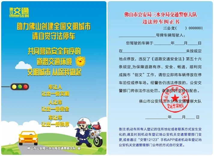 对于部分车主愿意及时挪车离开,三水交警本着温度执法的理念,对他们进行警告教育,并派发车辆违停警告书。