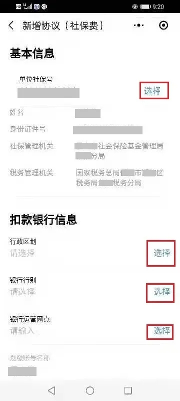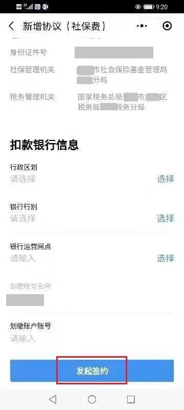 系统自动查出参保人基本信息。参保人确认基本信息并填选银行账户信息,信息确认无误后,点选“发起签约”按钮。