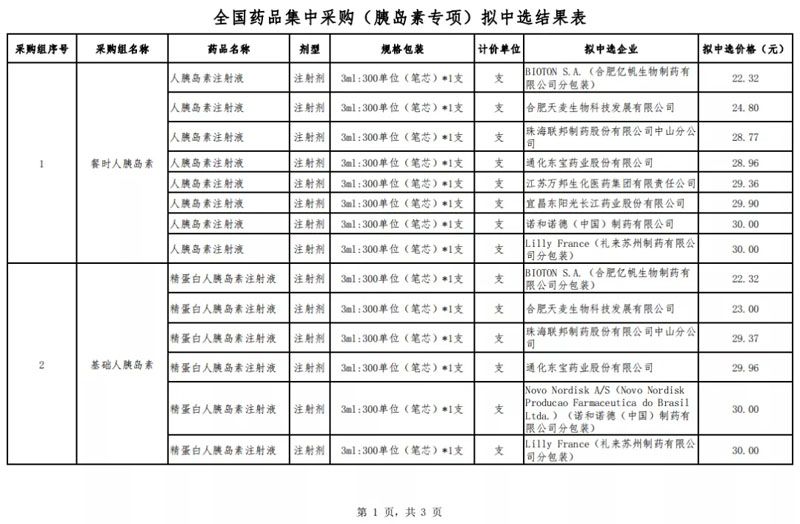而胰岛素是生物药,目前还没有一致性评价,本次集采根据生物药的特点,对采购规则进行了调整完善。坚持需求导向,由医院选择中选产品。