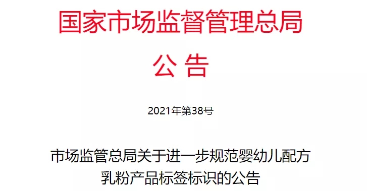 11月12日,市场监管总局发布《关于进一步规范婴幼儿配方乳粉产品标签标识的公告》,第四条规定:
