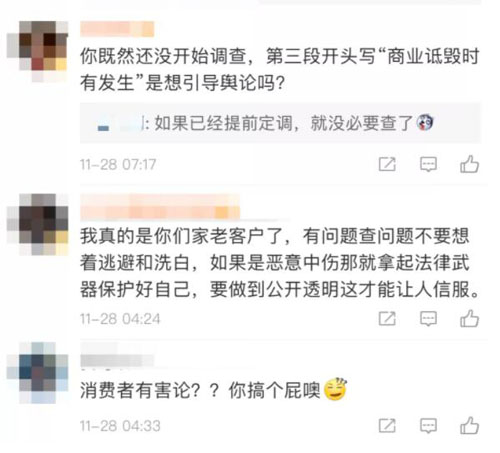 在该条微博的评论区,有人“保持中立”,质疑事件真实性,或认为并非螺蛳粉产品自身问题。但更多网友表示:“产品出问题,怪事件发酵快?”“失败的公关”。