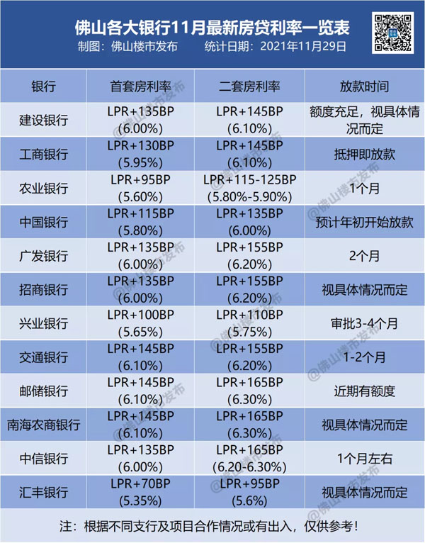 佛山各大行最新利率如何?来看楼市君最新调查。