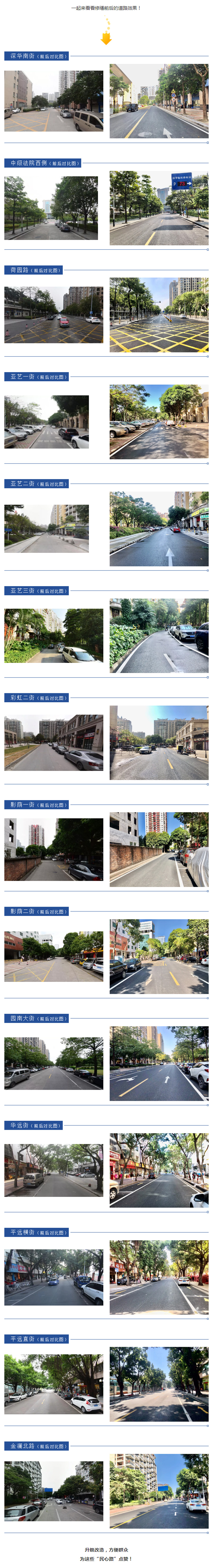 据了解,项目主要对园南大街(汾江南路-华远西路)、亚艺一街(亚艺三街-湖景路)、亚艺二街(亚艺三街-湖景路)、亚艺三街(湖景路-亚艺公园西侧)、彩虹二街(彩虹路-季华六路)、影荫一街(影荫路-紫坊西街)、影荫二街(影荫路-绿影西街)、华远街(华远西路-金澜北路)、平远直街(影荫路-绿景路)、平远横街(汾江南路-华远西路、国税中心南侧)、中级法院西侧(荷园路-中级人民法院)、荷园路(绿景路-魁奇路)、金澜北路(绿景路-魁奇路)、深华南街(深华路-路尾)共14条道路进行修缮升级,总长度近7公里,总面积超7.4万平方米,主要通过对现有路面加罩超薄沥青混凝土并施划道路标线等,工程总投资2258万余元。