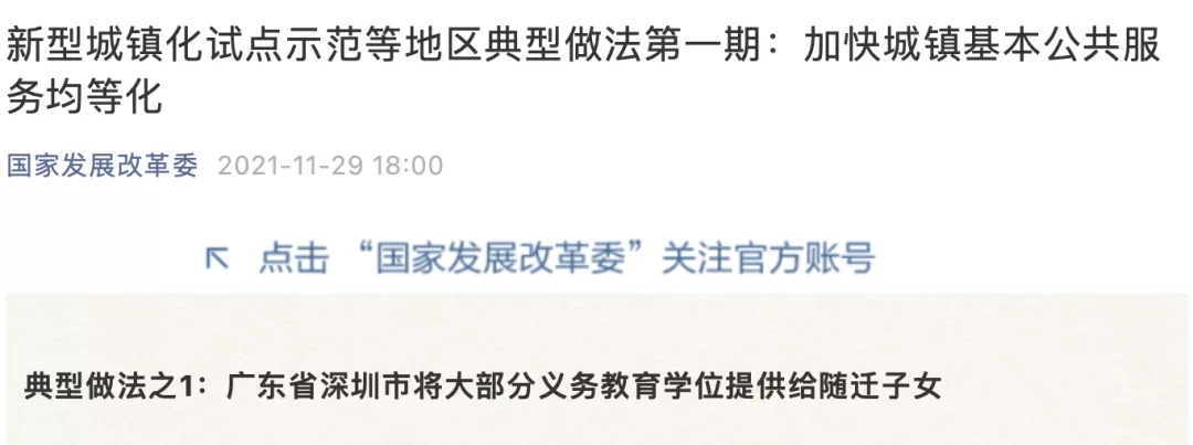 11月29日,国家发展改革委在微信公众号上发布《新型城镇化试点示范等地区典型做法第一期:加快城镇基本公共服务均等化》,公布了湖北武汉、广东深圳和重庆市等16个地方的典型做法。