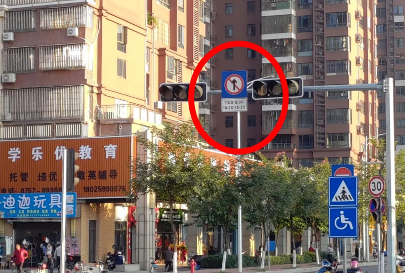 △堤岸路(丽日名都地下停车场西出口)限行时段禁止左转