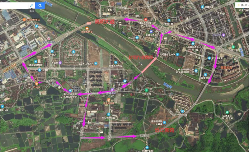 单向通行路段堤岸路(即丽日名都与妇幼保健院、一小之间约300米道路)交通管制期间,堤岸路为南往北方向通行。