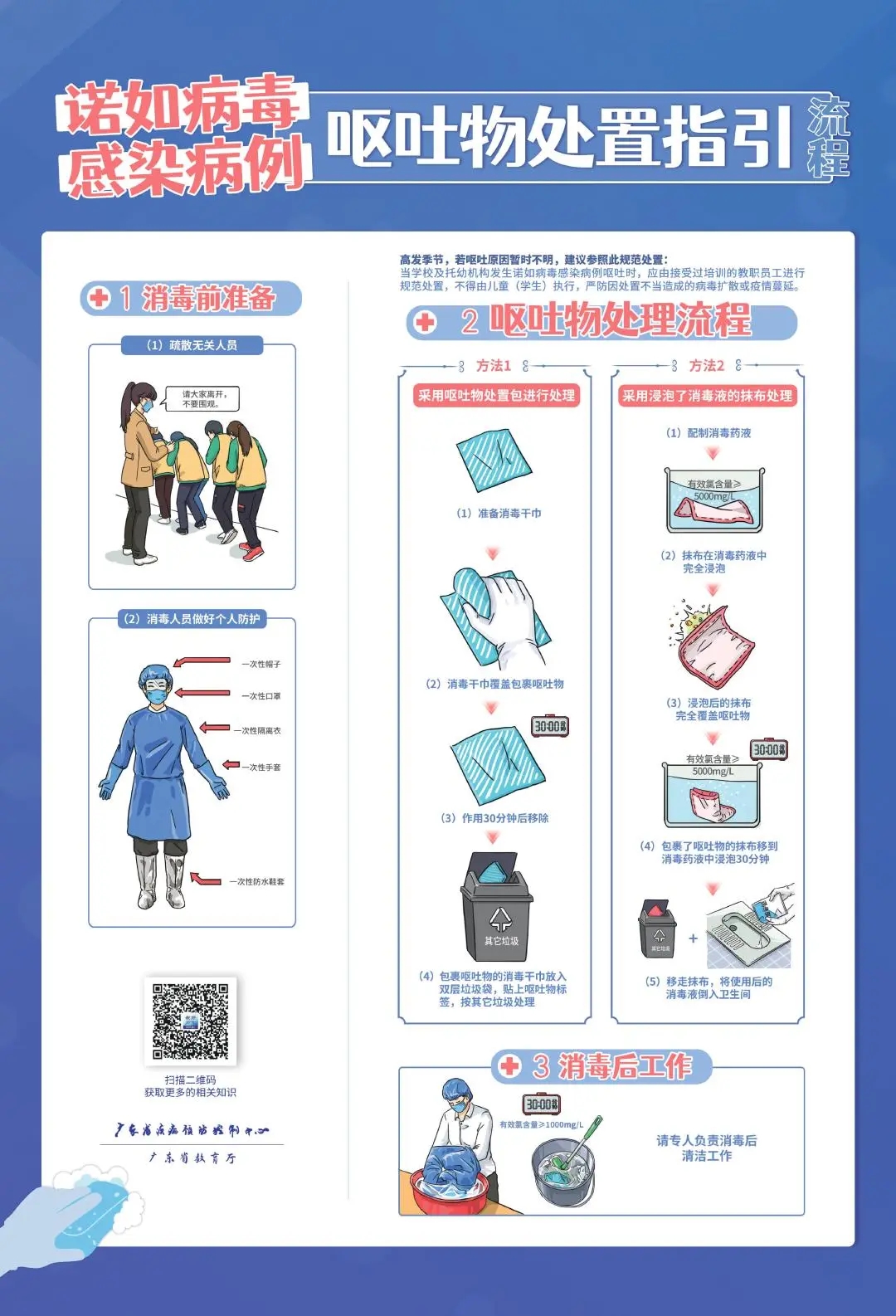 诺如病毒感染则有很强的传染性,在幼儿园、学校等集体场所,呕吐物处理不当是造成诺如疫情暴发的重要原因。酒精对诺如病毒无效,最有效的是含氯消毒剂。详细处理指引如下: