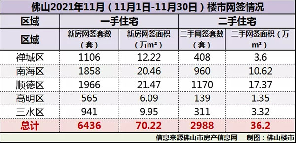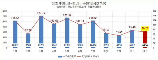 根据佛山市房产信息网数据统计,佛山11月份一手网签6436套,网签面积70.2万m²。