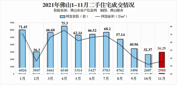 根据统计,11月份佛山二手房网签套数2988套,网签面积36.29万㎡。对比10月份的数据,有稍稍“回暖”迹象。