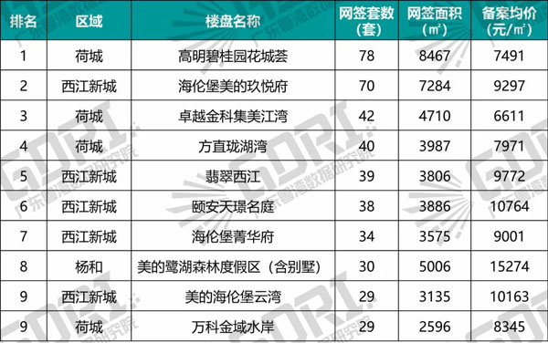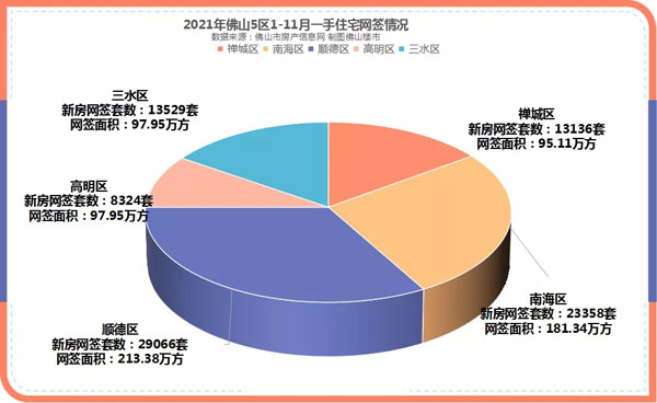 另外禅城区前11个月网签套数13136套,网签面积达95.11万m²;三水区网签套数13529套,网签面积达97.95万m²;而高明区仍未破万。