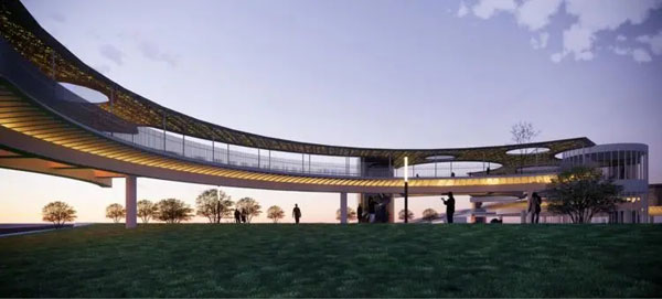 根据项目方的初步设计方案,规划中的半月岛天桥主体(一期)长度约为 400米,天桥横跨东平路,将半月岛与西侧城市公园串联为整体。在设计上,天桥为了呼应半月岛主题,设计成大小不一的“月牙”叠合在一起,相切的位置将演变为各种有趣的空间,例如观景台、畅想区、艺术展览、共享图书馆等。