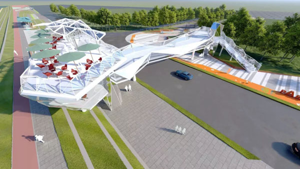 “我们希望这座天桥不仅是一般的市政设施,在满足原有的人车分流需求下,最大程度与公共艺术和服务相结合。” 黎嘉表示,天桥将建筑、环境和生态湿地整体融合,打造成公共配套的功能复合空间。