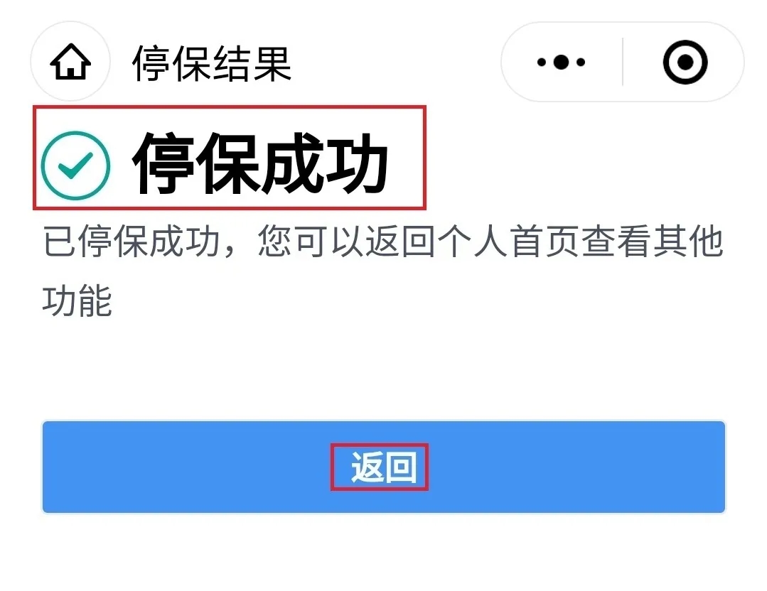 停保确认后,系统反馈停保结果:提示“停保成功”,即操作完成。