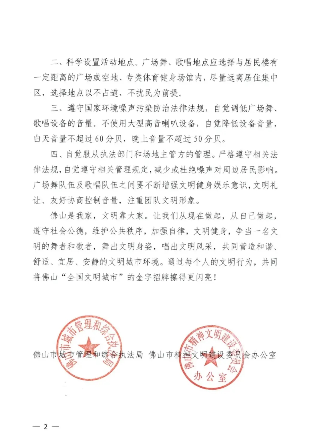 · 中午12:00至14:00、晩上9:30至第二天8:00,不开展使用乐器、音响器材的广场舞和歌唱等活动。