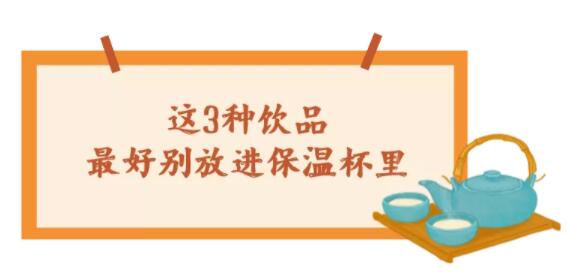 【建议】:尽量不要用保温杯装热牛奶、豆浆等饮品,同时也不要放置太久,最好在3小时内喝完。