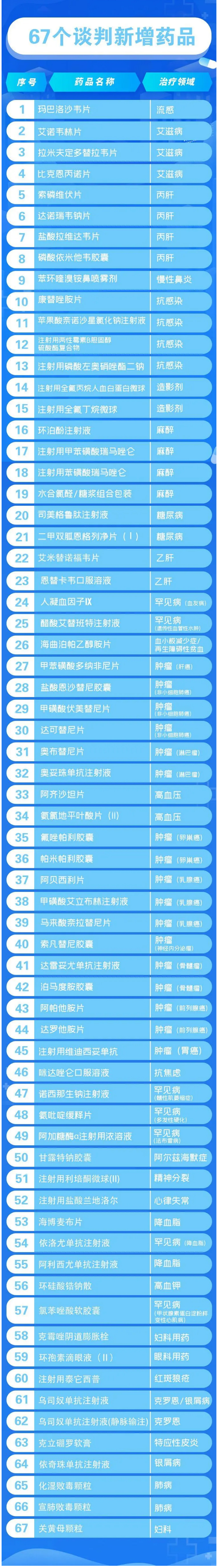 调整后,2021年国家医保药品目录内药品总数2860种,将于2022年1月1日起正式实施。与原市场价格相比,通过谈判降价和医保报销,本次谈判预计2022年可累计为患者减负超过300亿元。