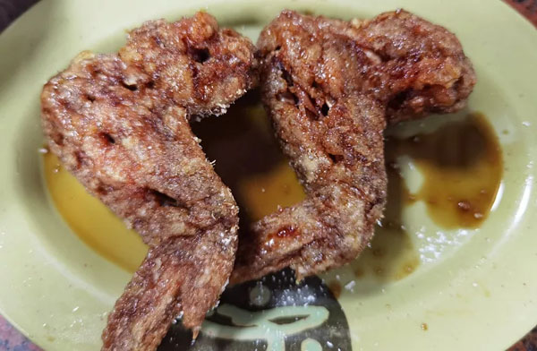 这里的炸鸡翅之所以能牢牢抓住三水街坊的胃,是因为它跟我们平时吃的炸鸡翅很不一样,表面甜甜的酱汁和椰蓉是它的灵魂。炸鸡翅火候控制得刚刚好,饱满多汁,脆皮咸香,咬一口就幸福感爆棚。