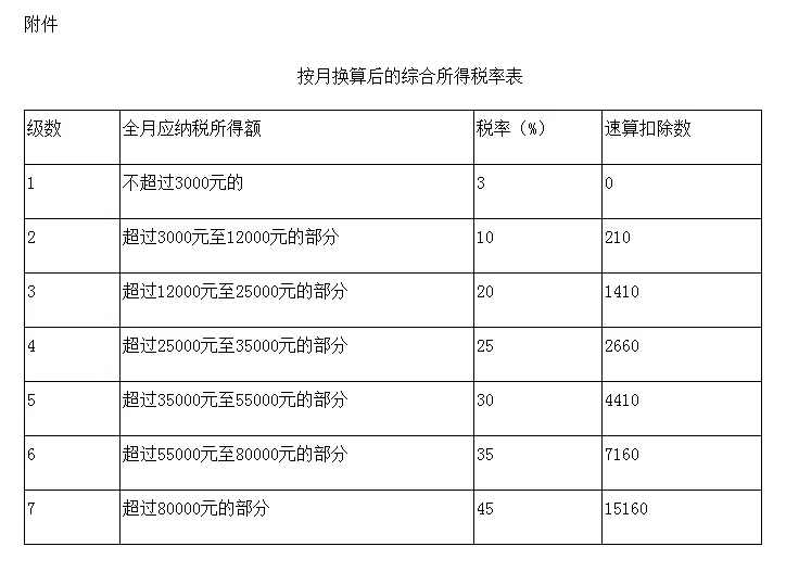 (一)居民个人取得全年一次性奖金,符合《国家税务总局关于调整个人取得全年一次性奖金等计算征收个人所得税方法问题的通知》(国税发〔2005〕9号)规定的,在2021年12月31日前,不并入当年综合所得,以全年一次性奖金收入除以12个月得到的数额,按照本通知所附按月换算后的综合所得税率表(以下简称月度税率表),确定适用税率和速算扣除数,单独计算纳税。计算公式为: