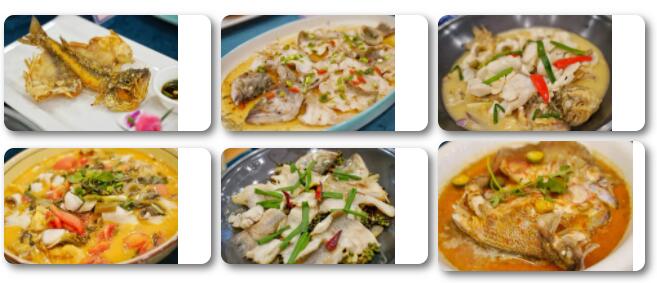 ▲菜式依次为:油泡加州鲈、咸柠檬蒸加州鲈、烧酒煀加州鲈、酸菜煮加州鲈、鲜花椒焗加州鲈、臭臭加州鲈。