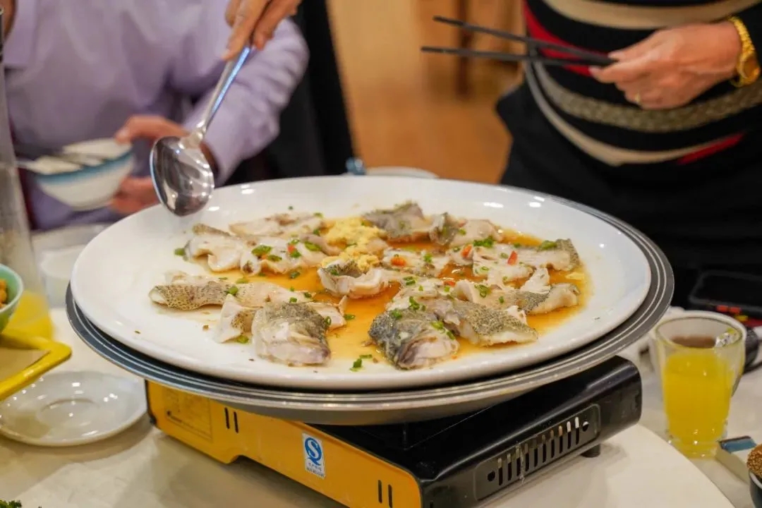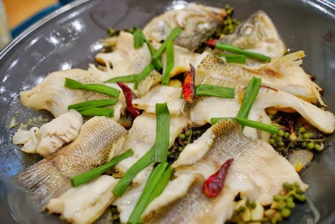 ▲“佛味鲜生·星级加州鲈料理”:鲜花椒焗加州鲈。