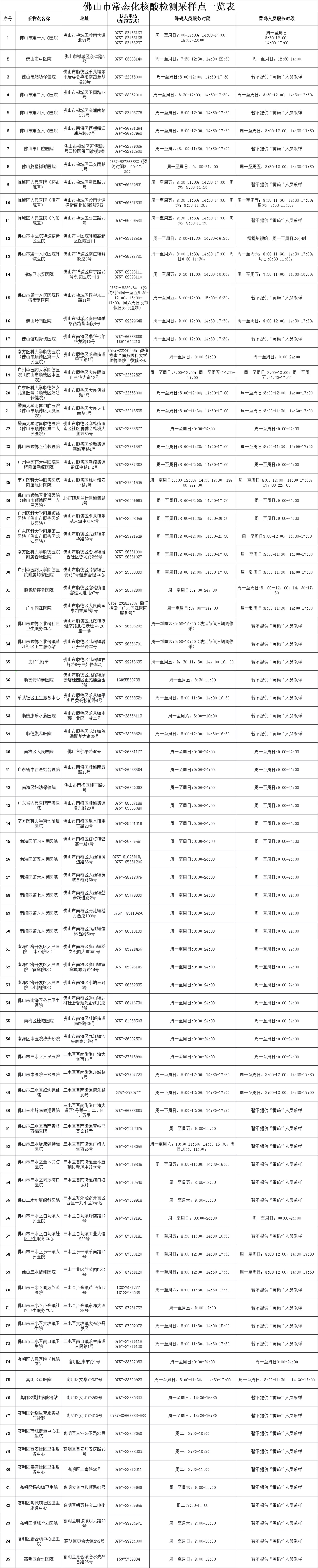佛山市常态化核酸检测采样点