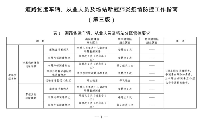 为深入贯彻习近平总书记重要指示精神,认真落实《国务院应对新型冠状病毒感染肺炎疫情联防联控机制关于进一步加强新冠肺炎疫情防控工作的通知》(国办明发电〔2021〕10号)最新要求,从严从紧从细做好道路货运行业新冠肺炎疫情防控工作,结合当前疫情防控形势,部修订形成了《道路货运车辆、从业人员及场站新冠肺炎疫情防控工作指南(第三版)》(以下简称《指南》),进一步严格分级分类防控要求,强化从业人员防护,加强重点场所、重点人群防控工作。