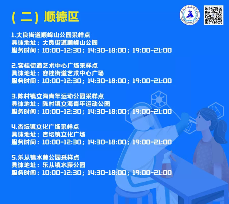 其中,南海区将设置5个采样点,分别位于桂城街道行政服务中心侧、大沥公园、黄岐文化广场、狮山市民广场、里水洲村广百广场;高明区则在高明区行政服务中心,七星岗公园两处选点。