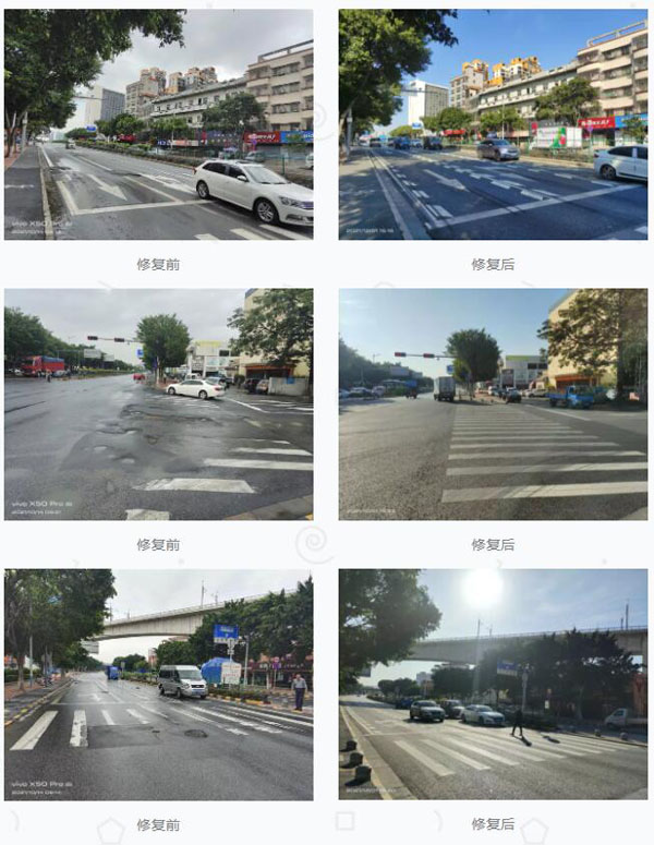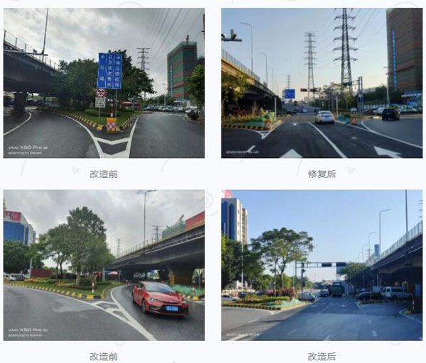 今年6月,禅城区实施了高速出入口交通环境整治工程,不到一个月时间,对涉及季华路(紫洞路~佛山一环)、张槎路(华宝北路~禅西大道)、魁奇路西延线(罗格收费站~镇中路)、吉利大道(龙津西路~上淇村口)等路段的高速出入口进行交通环境整治。整治长度合计20.9km,建设内容主要包括路面病害处理、检查井提升、沥青罩面及标线恢复。