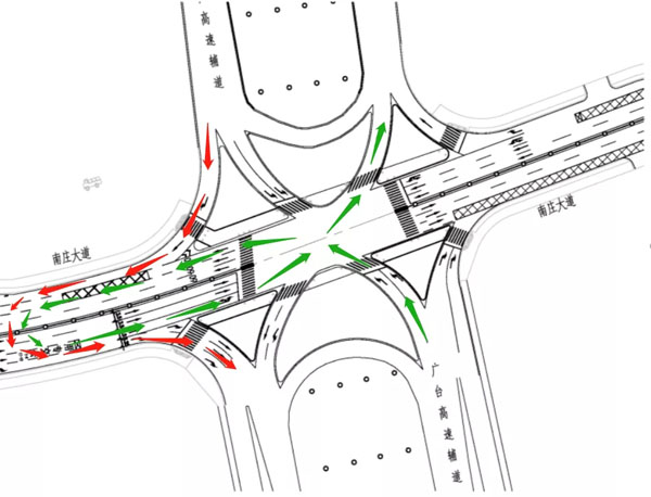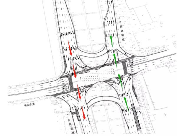 ▲南庄大道与广台高速辅道交叉口改造后路线图;