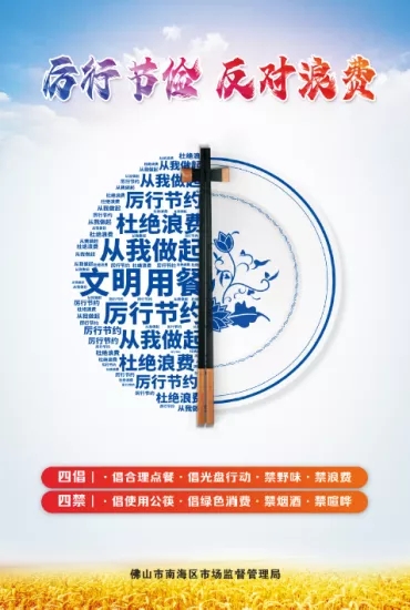 为认真贯彻落实习近平总书记关于制止餐饮浪费行为的重要指示精神,切实培养节约习惯,引领文明健康消费时代新风尚,在全社会营造浪费可耻、节约光荣的良好氛围,引导发展节约型餐饮企业,倡导消费者文明节俭、理性消费,佛山市南海区市场监督管理局特向全区餐饮服务单位和广大消费者发出如下倡议: