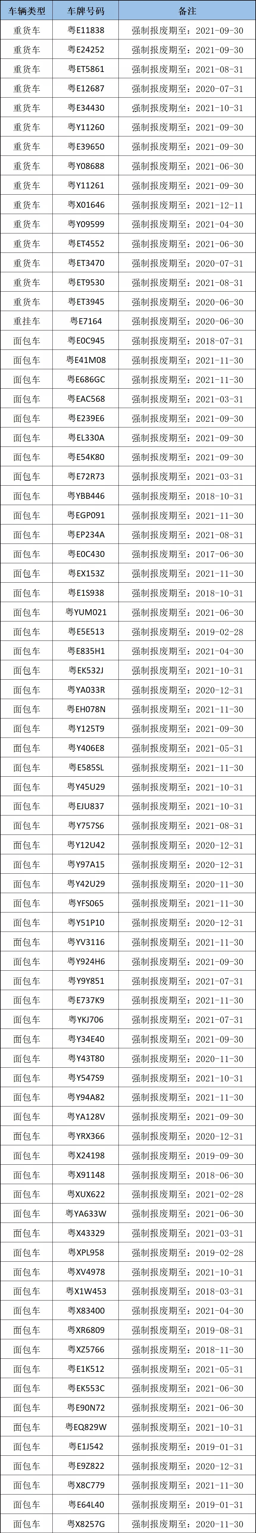 逾期未报废重点车辆清单