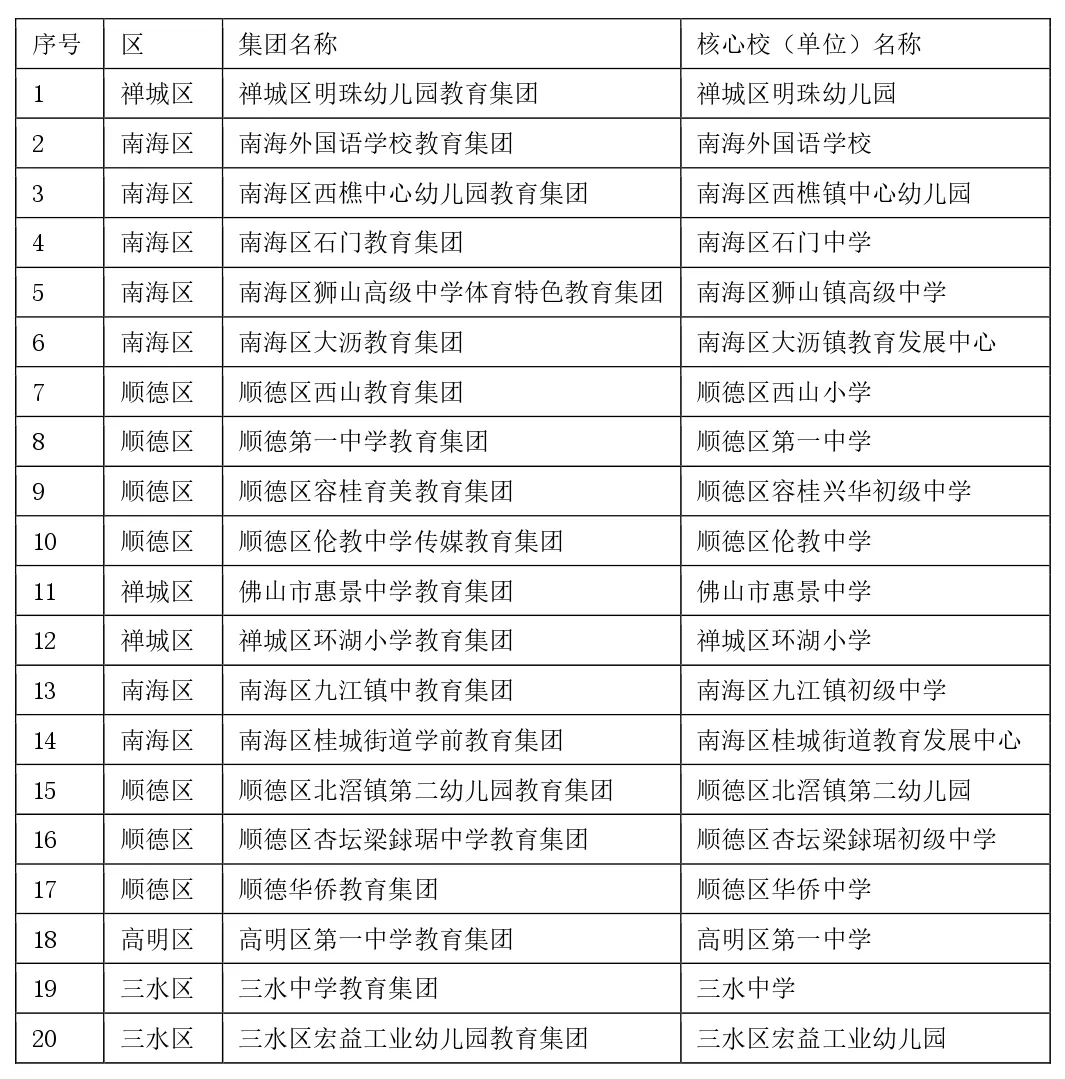 今年7月,佛山市教育局认定了20个教育集团为首批市级优质基础教育集团创建对象。