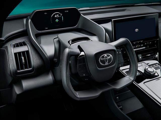 不同于传统汽车的方向盘的是,bZ4X所采用的异形方向盘与车轮之间并没有转向柱连接,而是通过线控转向系统实现了完美结合(One Motion Grip)。得益于电控方式带来的好处,用户在驾驶bZ4X遇到U型弯的时候,也能大大缩短转向时间。如果用户需要将方向盘向左侧或者右侧打满,也仅仅需要将方向盘调整150°即可轻松实现。对于中国市场的消费者而言,丰田也是充满了诚意,因为未来异形方向盘的技术也将在中国市场率先采用和推广。