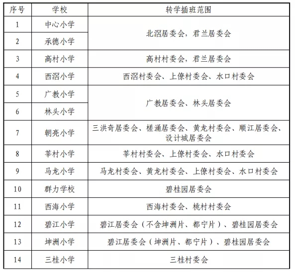 说明:如申请的学区学校某个年级没有学位可供转学插班,请到北滘镇其他有学位的公办学校进行转学插班报名。