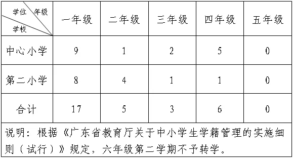 注:“年级”是指2022年2月在读的年级。根据《广东省教育厅关于中小学生学籍管理的实施细则(试行)》规定,六年级第二学期不予转学。