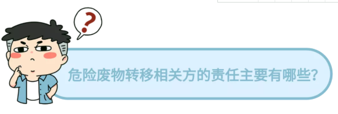 为了进一步加强对危险废物转移的监管,《转移办法》规定了危险废物转移的移出人、承运人、接受人、托运人等转移相关方的责任,明确了从移出到接受各环节的转移管理要求。