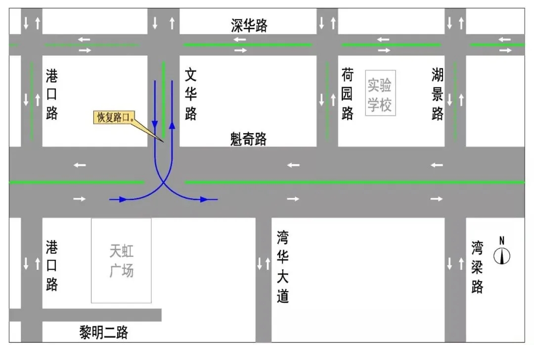 地铁湾华站施工即将完成,将于2021年12月23日零时恢复文华路(魁奇路-深华路)正常通行,届时将调整魁奇路文华路口部分交通组织。