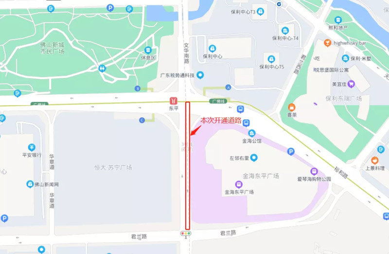 此次恢复交通将极大缓解保利洲际酒店、中欧中心、东平保利广场周边道路压力,优化提升了佛山新城慢行系统。此路段开通将新城CBD建筑群、东平站轨道交通站点、滨河景观带进行有效串联,为新城居民的生活带来便利,提升市民的幸福感。