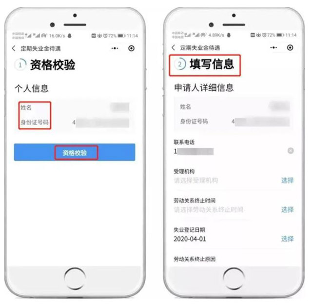 4、进入资格校验页面,输入姓名和身份证号码,确认无误后点击“资格校验”按钮进行资格校验。