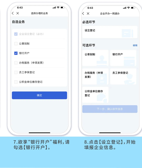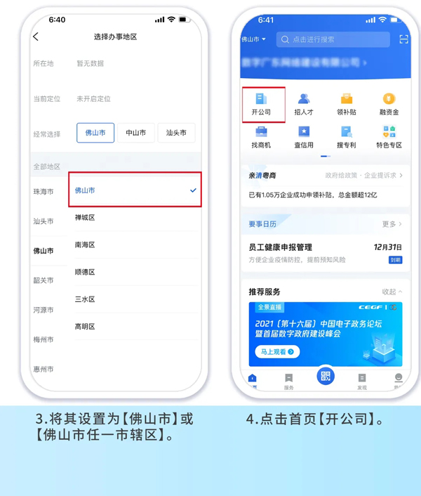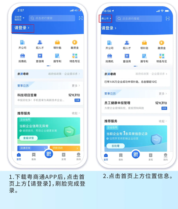 企业通过粤商通APP开公司,选择中国农业银行佛山市辖属网点(试点)、 顺德农商银行辖属网点(试点)预约开户,享费用减免、上门服务等福利。