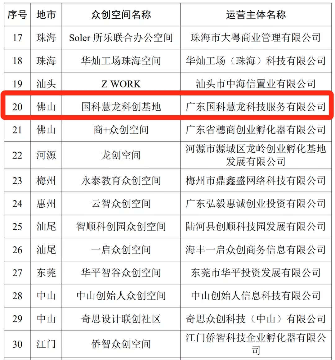 12月17日,据广东省科学技术厅正式公示,位于广佛上城碧+海创科技园的国科慧龙科创基地已成功评选为2021年度省级众创空间,佛山市仅2家。