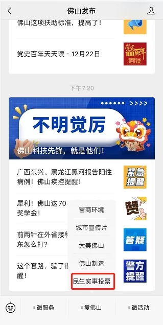 方式二:点击佛山发布菜单栏“爱佛山”-“民生实事投票”