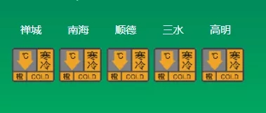 佛山市气象局预计,受寒潮影响,今明两天佛山气温继续下降,预计明天最低气温在5度左右;目前各区寒冷预警信号均已升级为橙色。阴冷天气维持,请注意防寒保暖;越冬作物、热带果树、畜牧及水产养殖业需做好防寒工作。
