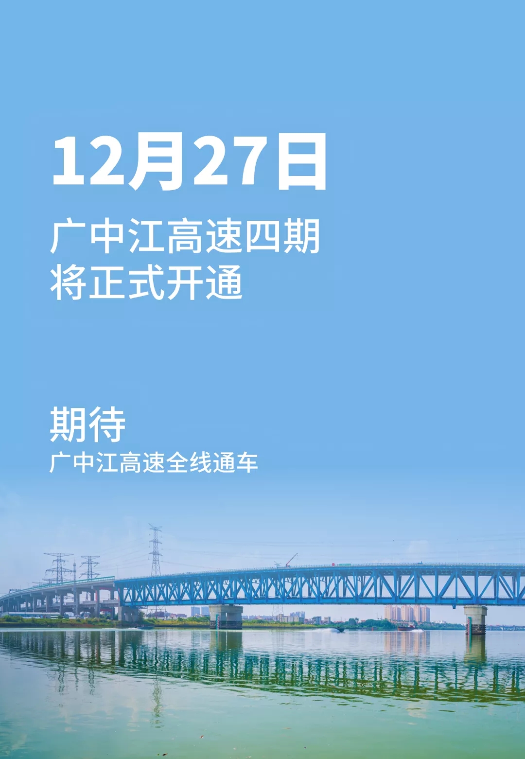 广中江高速项目四期工程将于12月27日正式开通,广中江高速将实现全线通车。