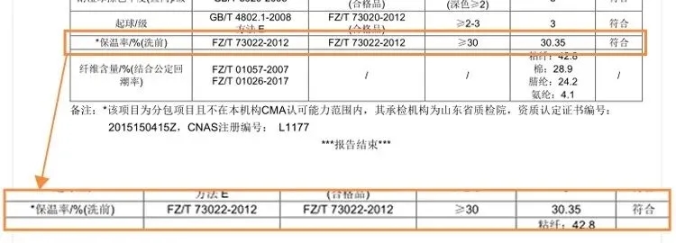 标准依据:FZ/T 73022-2019《针织保暖内衣》