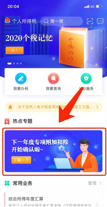 先按情形一步骤确认之前申报的其它不需要修改的专项附加扣除信息后,点击App首页,专项附加扣除填报。